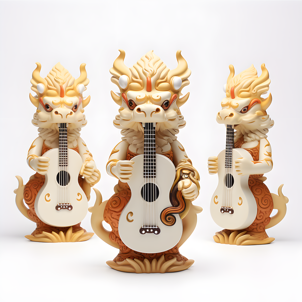 龙吟琴韵IP形象,将国潮文化中的龙元素与乐器相结合,展现出独特的艺术魅力。龙,作为中国传统文化的象征,代表着力量、智慧与祥瑞。乐器则承载着中华音乐的灵魂,是情感的载体和沟通的桥梁。龙与乐器融为一体,仿佛龙在演奏音乐,音乐在舞动龙魂。龙的形态与乐器完美结合,呈现出既神秘又动人的视觉效果。(秋地艺术展作品)