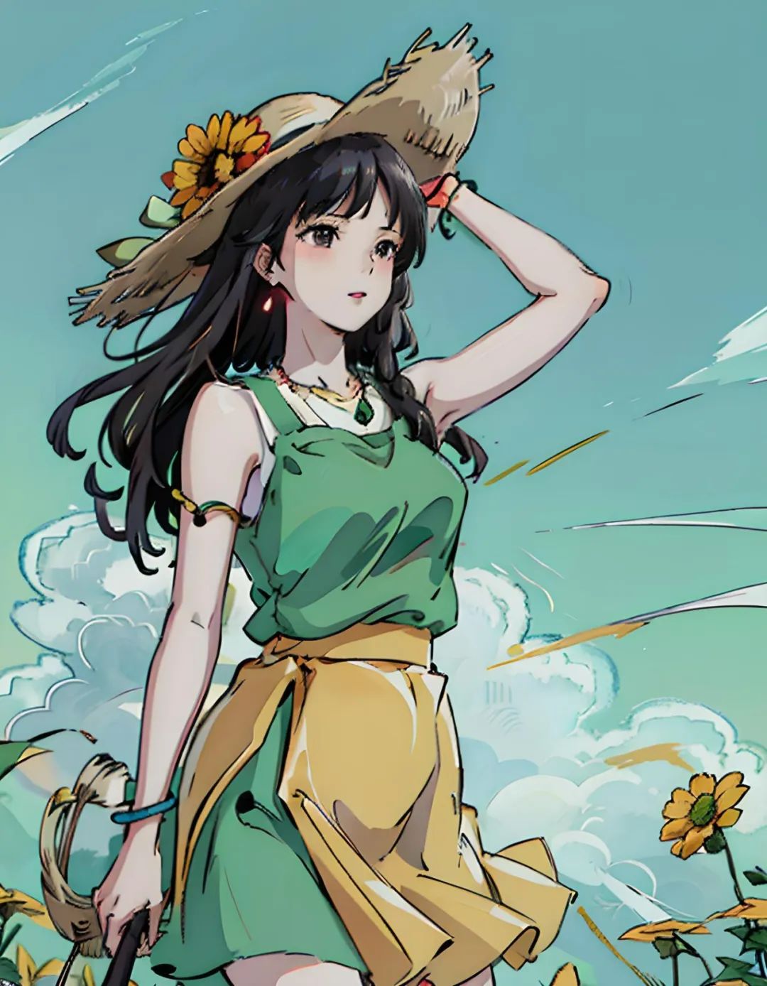 图五咒语(Prompt): 高清壁纸,8K,夏天的田野,蓝色的天空,一望无际的田野,五颜六色的花,一个穿着背带裤的小女孩在田野里奔跑,精致的脸,漂亮的大眼睛,黑色麻花辫,(快乐地奔跑),夏天,治愈Model: 彩漫1, CFG scale: 7, Hires upscale: 1.5, LoRA: 明亮质感(0.6)、水彩2.5D(0.45)、吉卜力(0.55)、水墨-2(0.55)https://m.wujieai.com/s/P2P8YND1一键复制后打开【无界AI】APP 或 点击链接 自动填入全部参数进行同款创作