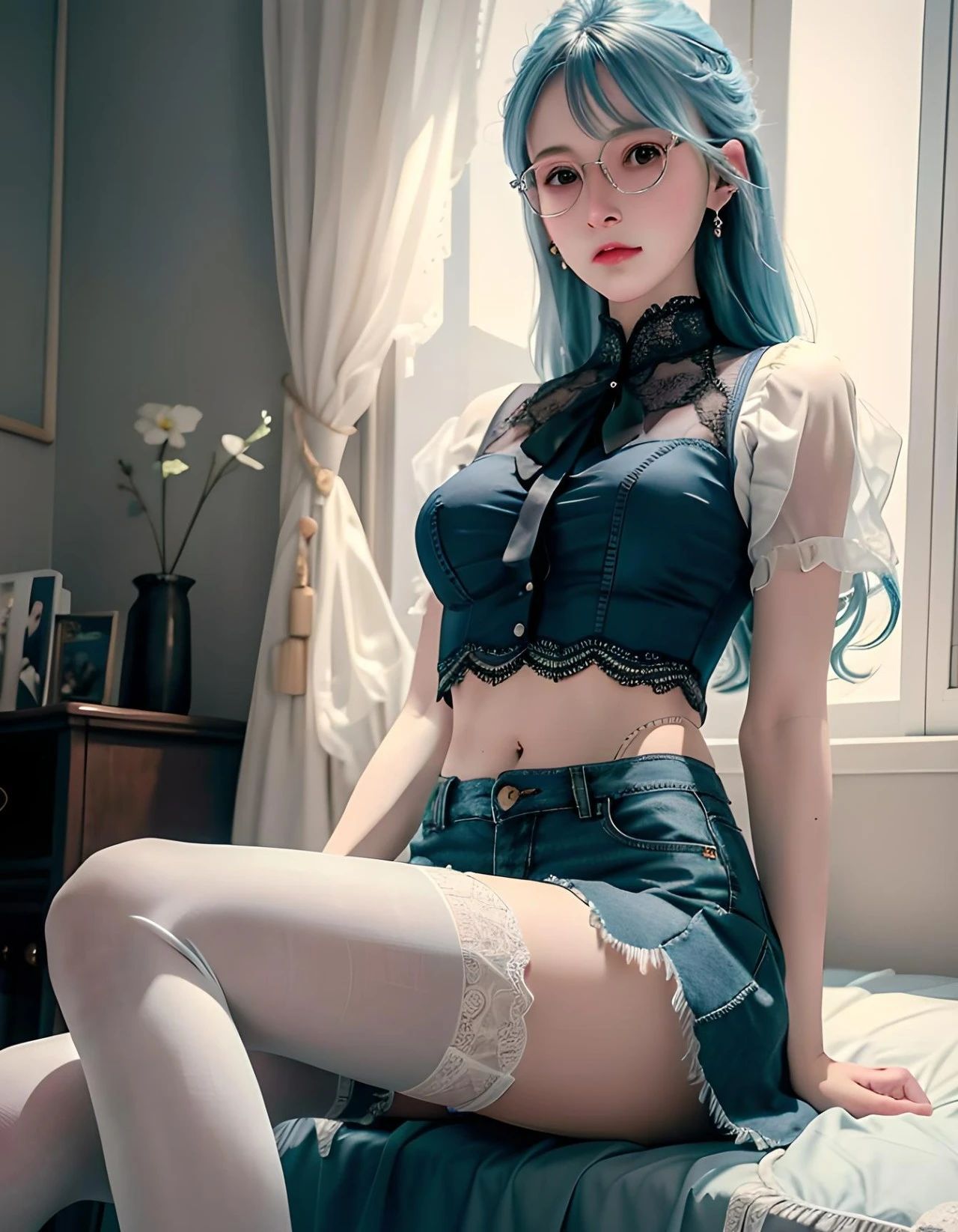 图5:女性,精致的五官,更高质量,高细节,超高分辨率,8k分辨率,大师作品,穿着中国旗袍,高开叉旗袍,在阳台上往外看,美腿,戴着中式传统发簪,鬓角的发丝被风吹起