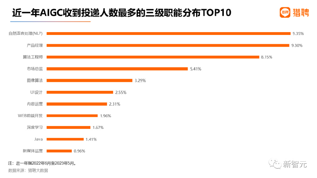 2. 投递AIGC领域自然语言处理和产品经理的人最多,占比合计近20%