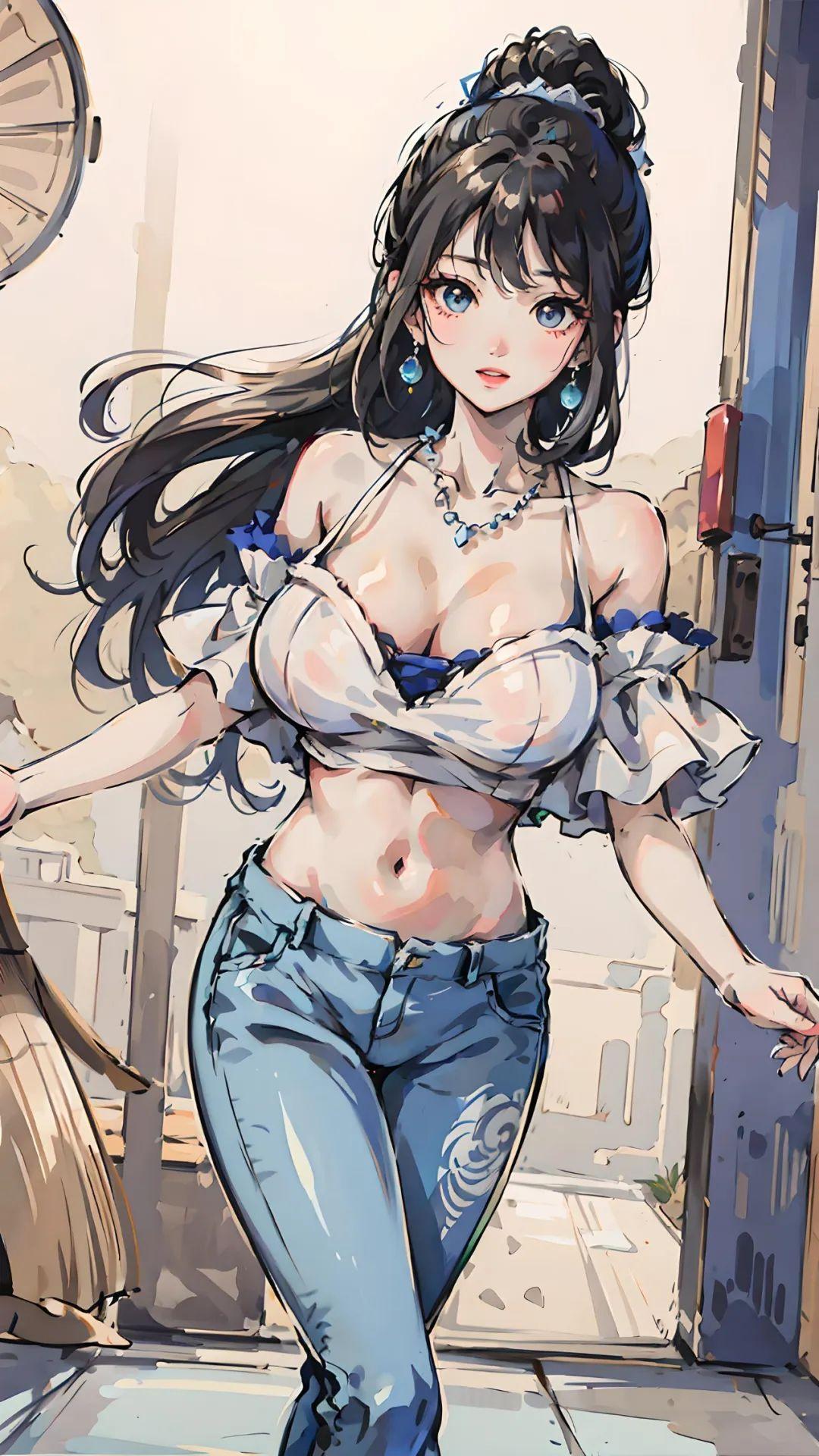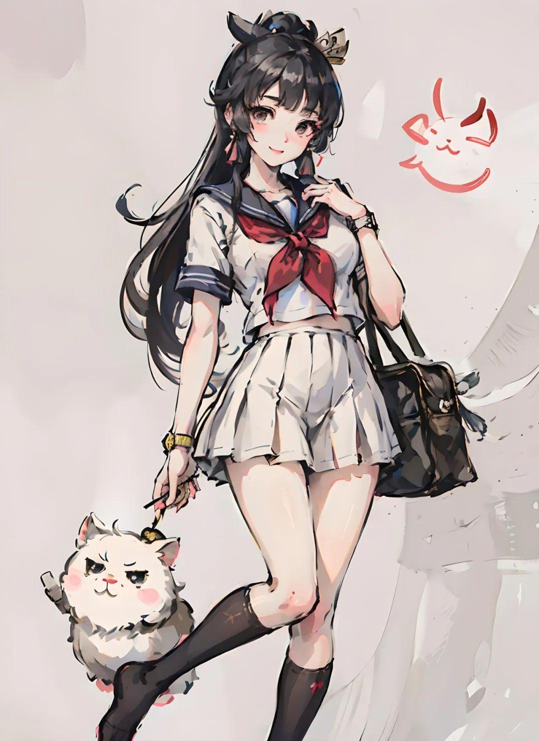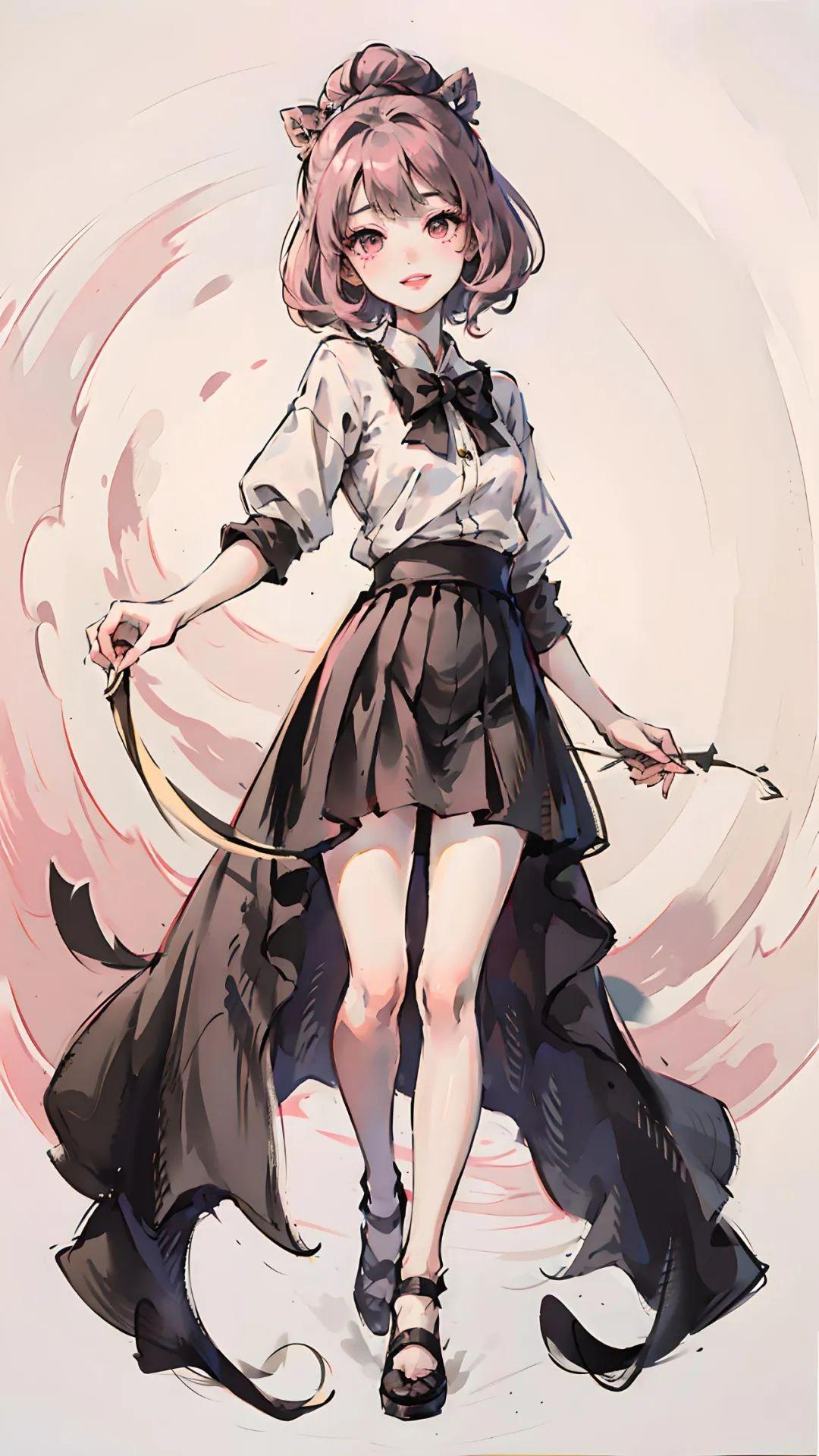 图4:这位女孩子容颜清秀,皮肤微微带有粉红色,眼角上扬,脸上带着灿烂的笑容。她的鼻子立体分明,嘴唇娇小而粉嫩,是那样的让人心动。她的着装轻盈舒适,穿着一件清爽的白色衬衫,衬托出她纤细的身材。下身穿着一条灰色的半截裙,裙摆轻柔飘逸,在阳光下显得更加柔美。她的脚穿着一双小巧的粉色平底鞋,轻轻踩在地上,走起路来轻盈优雅,散发出女性特有的美丽和魅力。