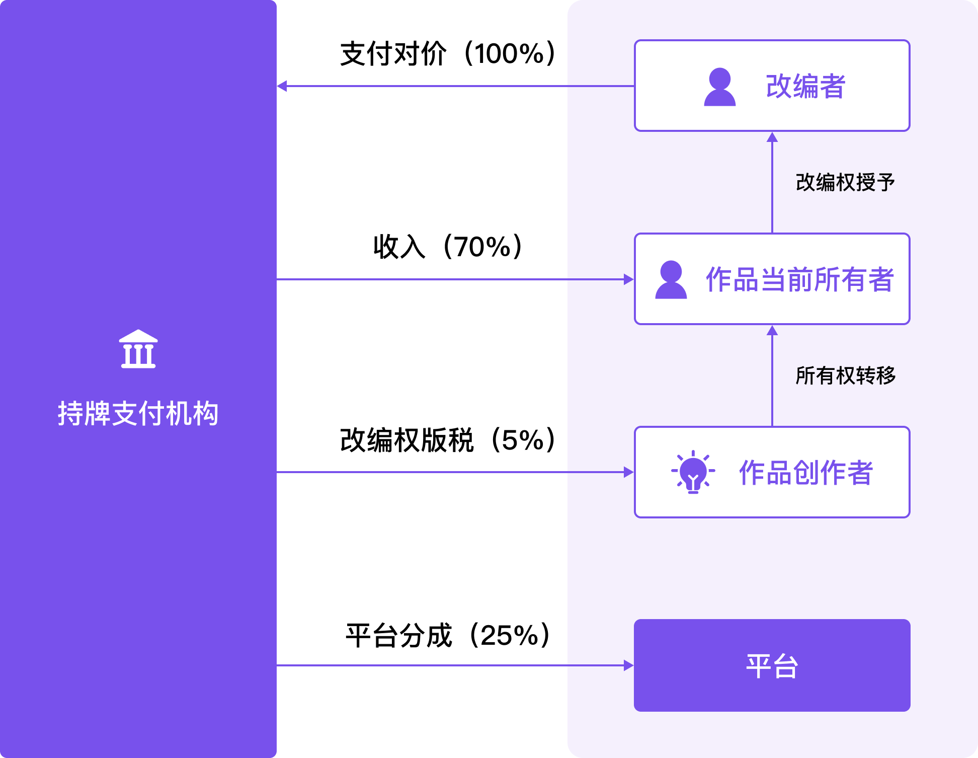 平台提供作品所有权的转让、使用权以及改编权授予这三类作品权利的拍卖。